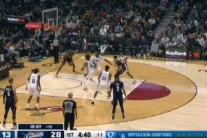 太厉害!康宁汉姆撤步顶着两人扔进三分 末节已砍下19分!