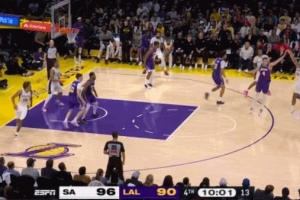 文班隔扣布朗尼!这一扣球的最高高度3.4米 文班滑翔距离2.2米!
