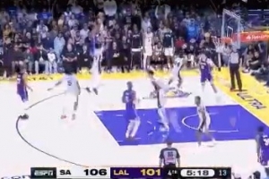 文班隔扣布朗尼!这一扣球的最高高度3.4米 文班滑翔距离2.2米!