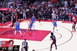 文班隔扣布朗尼!这一扣球的最高高度3.4米 文班滑翔距离2.2米!