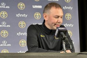 赛后,小吧在新闻发布会现场,掘金主教练小阿德尔曼接受采访,谈到了第四节大比分领先还让约基奇上场一事。