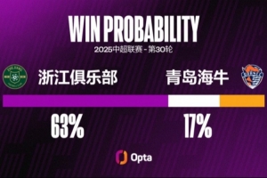 半场-浙江暂1-1青岛海牛 弗兰克破门李提香献助攻
