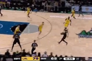 GIF-兰德尔强突上篮被吹进攻犯规,森林狼挑战成功变2+1